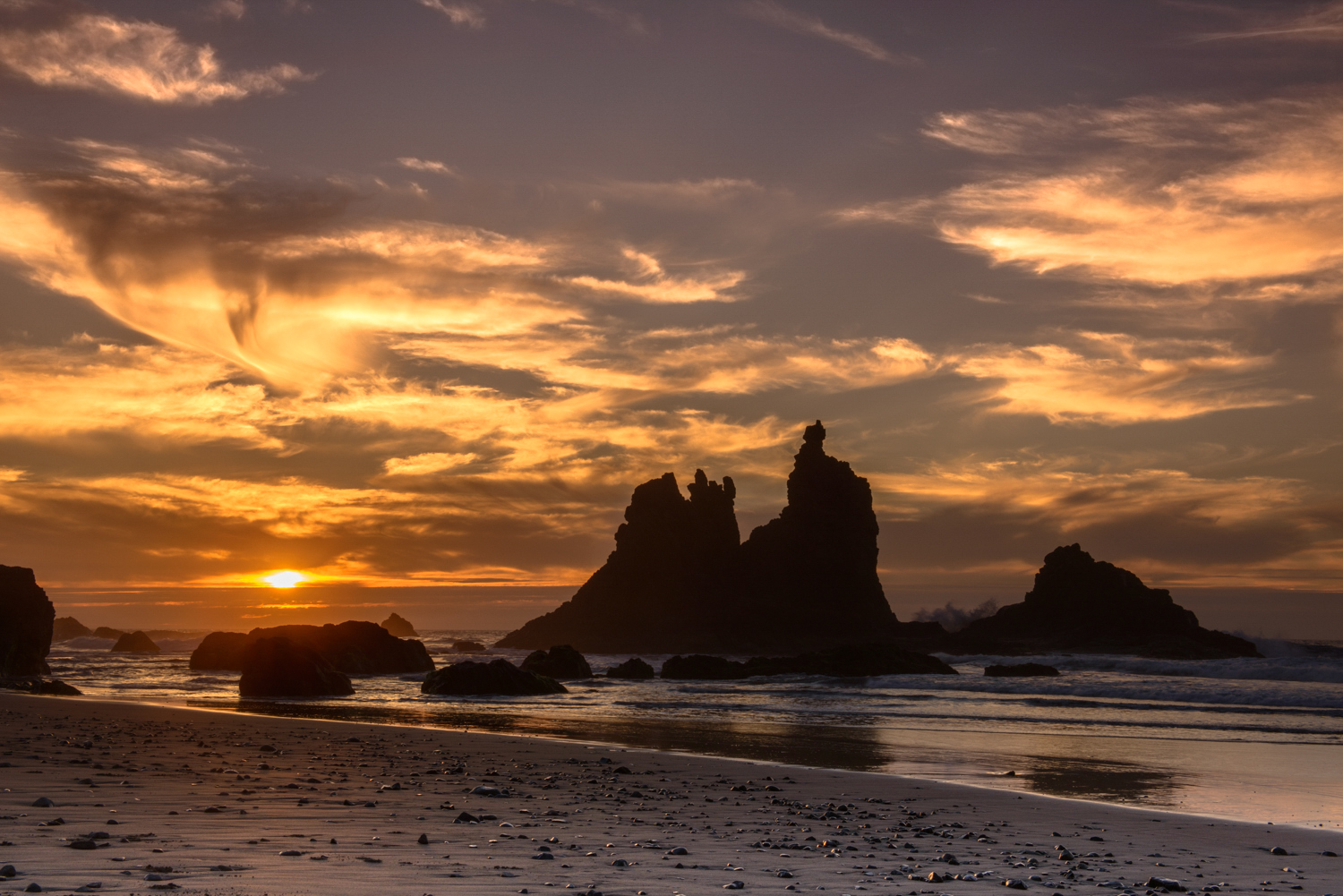 Puesta de Sol primaveral en la playa de Benijo